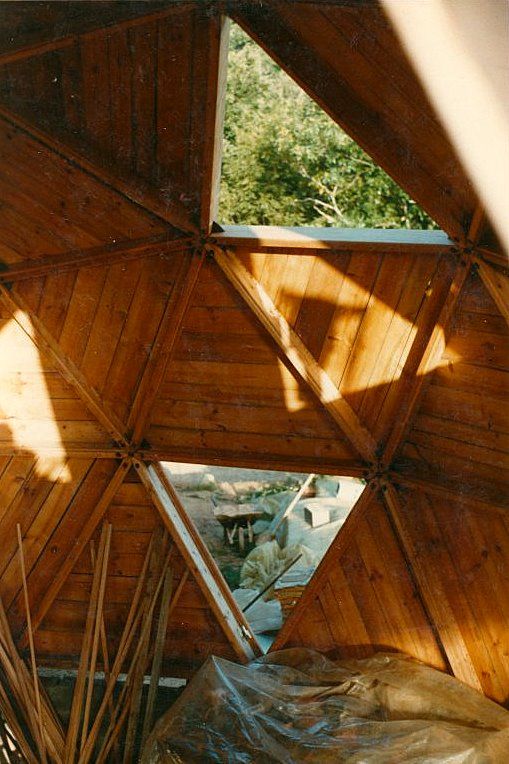 En gros il m’aura fallu un an et demi de travaux avec en moyenne, l’aide d’une personne à mi-temps pour aboutir à un dôme fermé avec la plomberie, les sanitaires et l’électricité, bref où il devient possible de commencer à vivre.