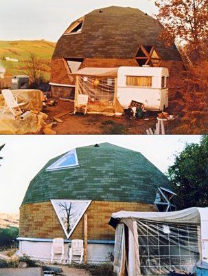 Les dômes et autres habitats vernaculaires en autoconstruction étaient dans l’air des années 70, parcourez AutoConstruction-Années70 en français inspiré de Shelter; j’ai été surpris en le retrouvant sur le web, de ce mélange d’idées novatrices et de trucs et astuces. Un genre de système D à la sauce psychédélique, le style est d’une autre époque; il y a quelques rares erreurs ou omissions, et il y a eu du nouveau depuis, mais l’essentiel y est déjà, à peine un peu trop optimiste.