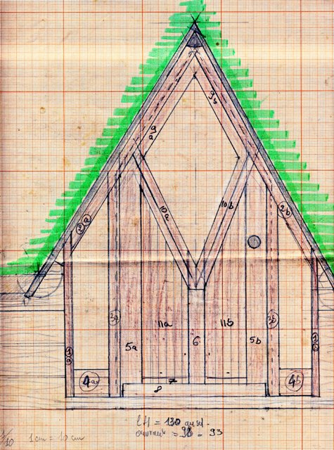 A ces contraintes j’en ai ajouté celle de ma façon de voir une maison, espace ouvert, avec un coin cuisine, un coin-coin toilettes et bains, une mezzanine, et un foyer, un peu décentré. Pour laisser le centre libre de circulation et d’utilisation (pour y chanter par exemple). Sans exclure quelques possibilités ultérieures, comme fermer les chambres.