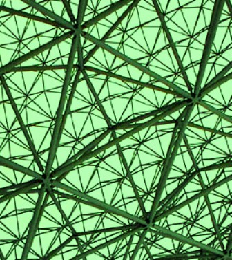 Les structures géodésiques combinent sphères ou cercles et tétraèdres ou triangles, des figures basiques particulièrement stables et efficaces, sortes de briques élémentaires.