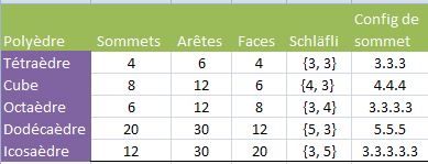 Les Polyèdres réguliers ont des noms et affichent ici leurs propriétés :