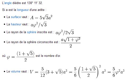 Ajoutons que les 30 arêtes de l’icosaèdre régulier définissent 15 rectangles d’or.